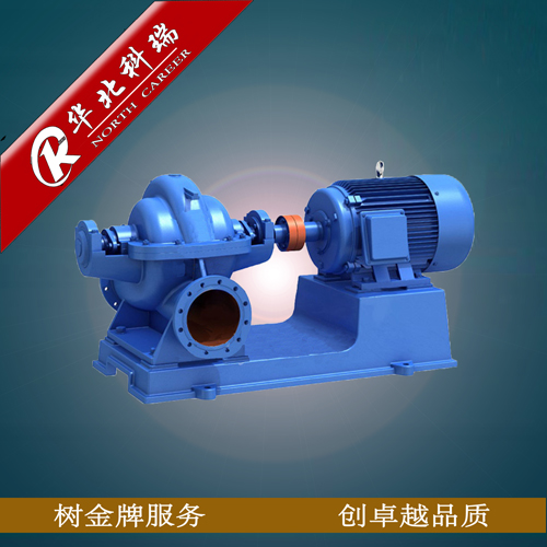 本型泵的吸入口与出口均在水泵轴线下方,与轴线垂直呈水平方向,泵壳中开,检修时无需拆卸进水,排水管路及电动机房(或其他原动机)。从联轴器向泵的方向看去,水泵为顺时针方向旋转。根据需要也可生产逆时针旋转的泵,但订货时应特殊提出。本型泵的主要零件有:泵体,泵盖,叶轮,轴,双吸密封环,轴套,轴承等。根据介质不同可换其他材质。