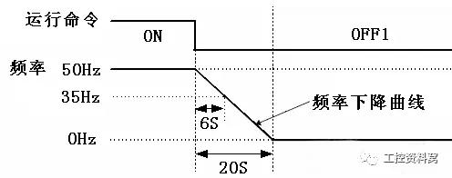 用户现场检查参数发现,变频器的停车方式为OFF1(即变频器按照选定的斜坡下降速率减速并停止),这也就意味着变频器在从运行频率减速到0Hz过程中,始终是有电流输出的,并因负载过重而过流跳闸。