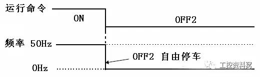 将命令数据组参数 P0701=1修改为P0701=3,当停车命令到来,变频器输出为零,电动机自由停车。