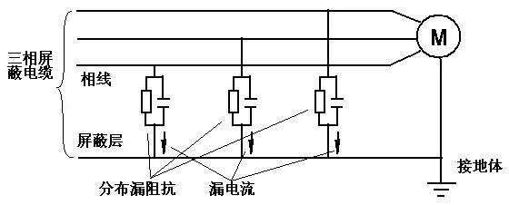 (1)绝缘不良出现漏电流。变频器、电缆、电动机的绝缘不良,绝缘电阻下降造成漏电流上升。下图是电缆的分布参数引起的漏电流。