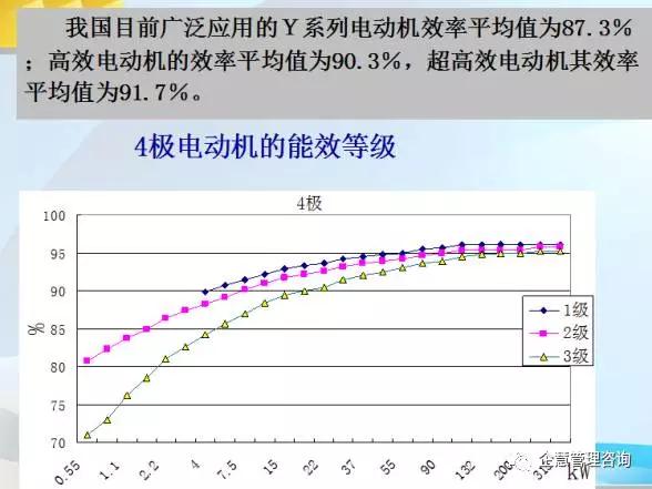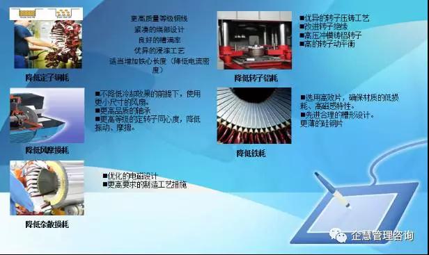 针对美国2011年将在全球率先强制推行超高效率标准电机,国内上海电机研究所牵头,研制超高效电机系列产品开发。该电机损耗值比高效电机降低20%。对于年运行时间超过8000小时的电机,负荷率超过60%,电费以0.7元/度计算,1.5年左右可收回标准电机额外增加的成本。